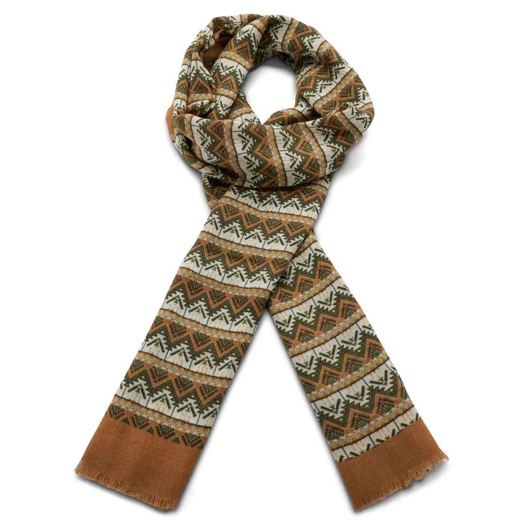Avec son imprimé aztèque et son allure vintage, cette écharpe ajoutera une touche Woodstock à votre look. Elle est fabriqué à partir d’un mélange léger de modal et de coton et la longueur idéale pour être enrouler autour de votre cou avec style.