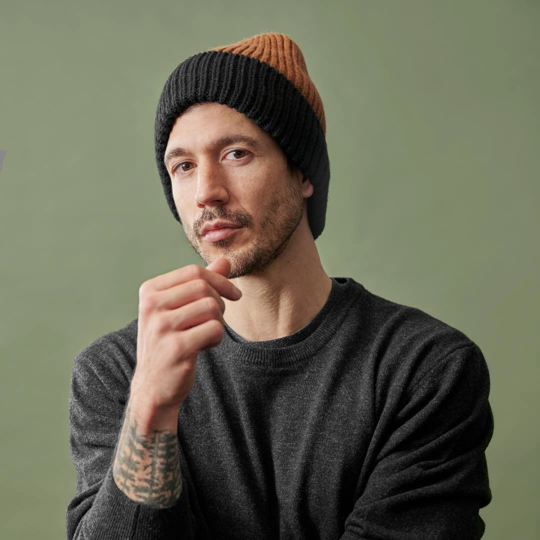 Ce modèle noir et marron est conçu pour être le bonnet que vous porterez toute la saison. Fabriqué avec un mélange pas trop chaud d’acrylique de haute qualité et de laine mérinos qui ne démange pas.