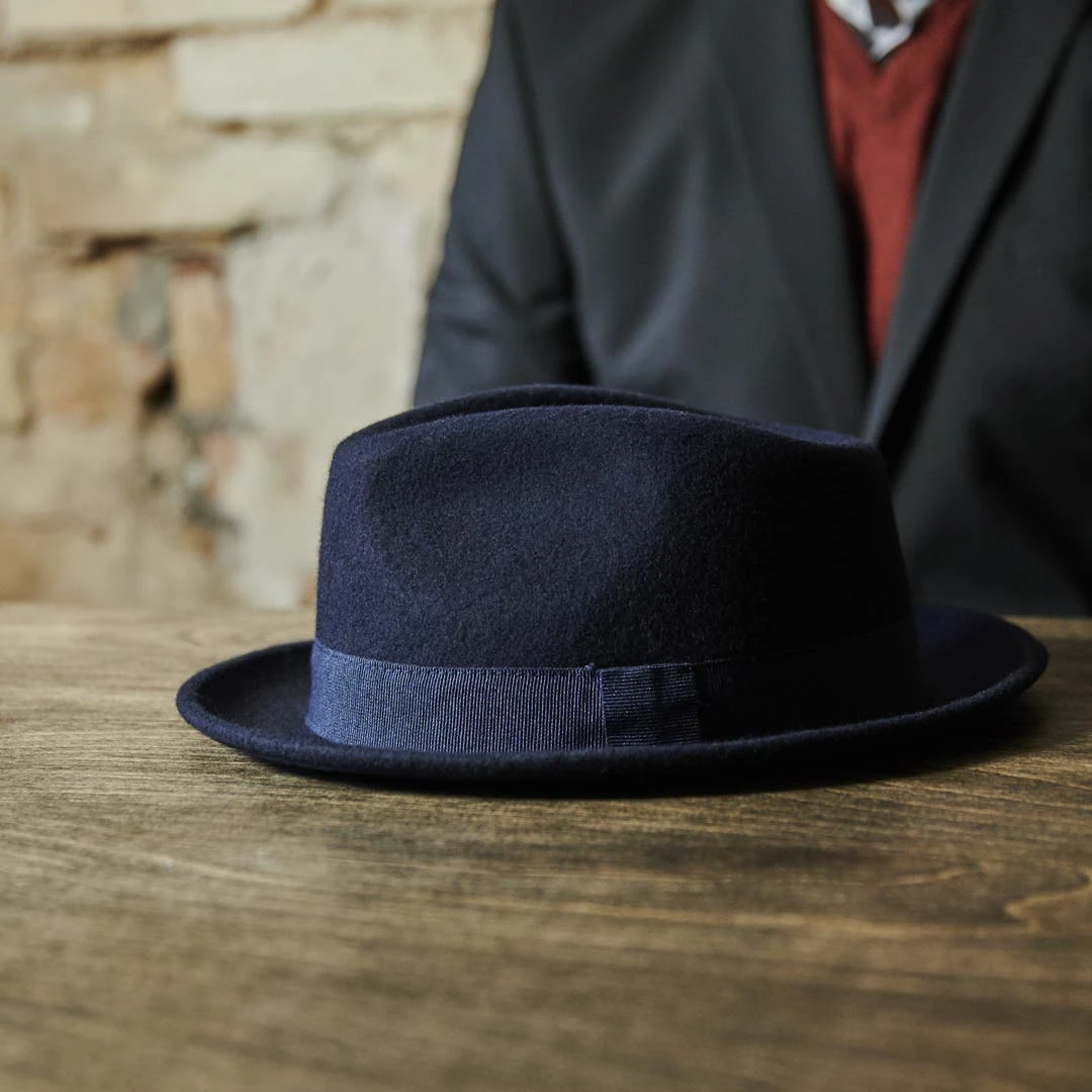 Fawler Chapeau Fedora Filippo Bleu Marine à Bords Bruts