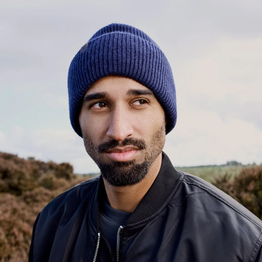 Un bonnet bleu marine très stylé, parfait pour rester au chaud et au sec de manière très stylée durant tout l’automne et tout l’hiver.