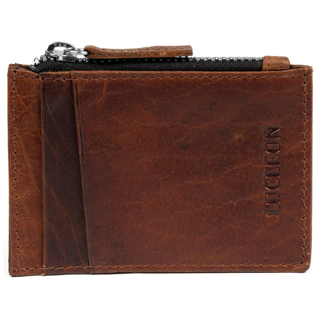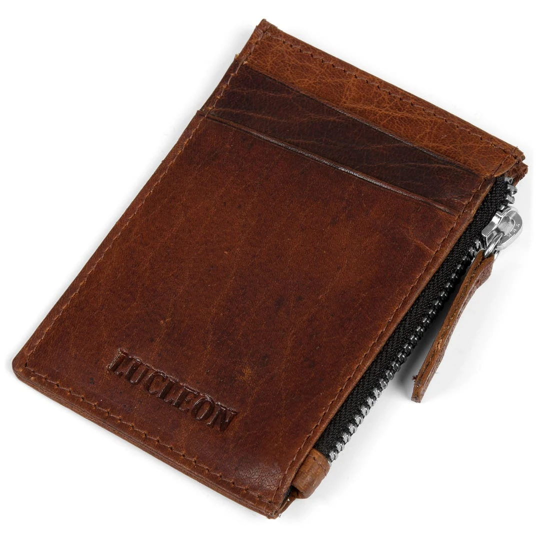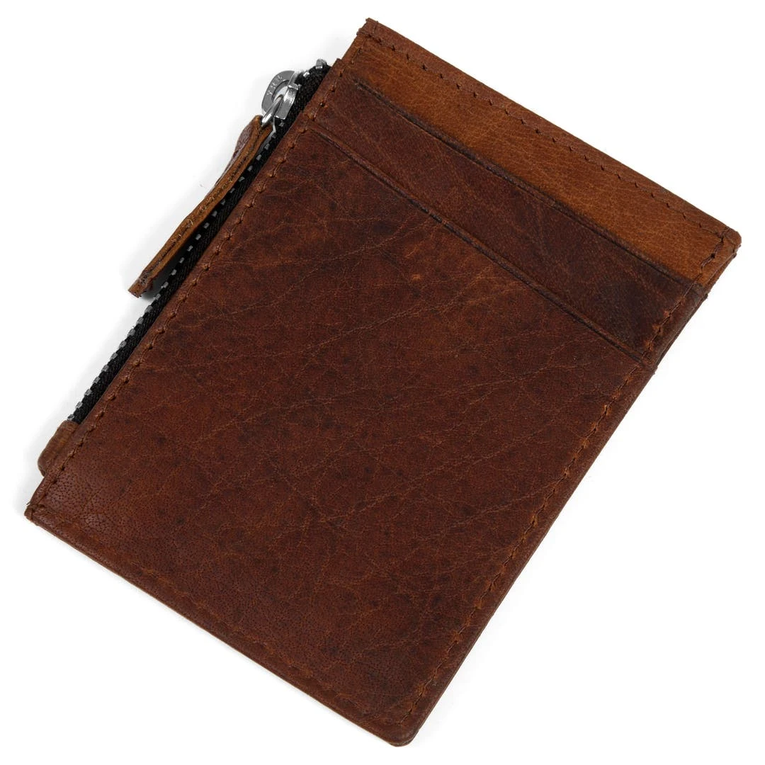 Transportez pièces, billets et cartes en toute sécurité avec ce mini portefeuille en cuir de buffle premium. Tout en élégance avec son cuir marron foncé très peu traité pour conserver les défauts naturels et les plis de la peau de l’animal.