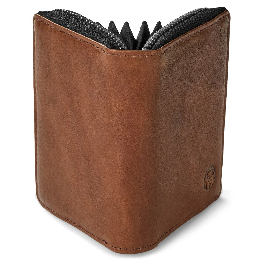 Ce porte-cartes peut accueillir jusqu’à onze cartes et est fabriqué en cuir tanné avec des végétaux. Contient tout, de votre permis de conduire à vos cartes de crédit.