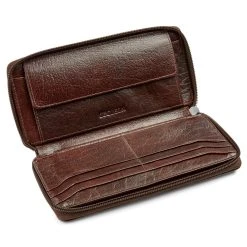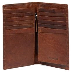 Fabriqué en cuir brun au tannage végétal avec une doublure intégrée pour se protéger contre les balayages non-autorisés des rayons RFID.