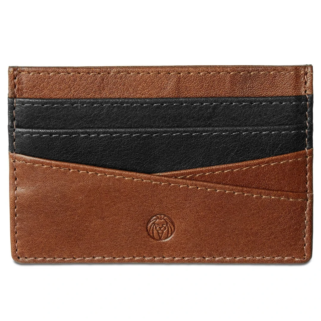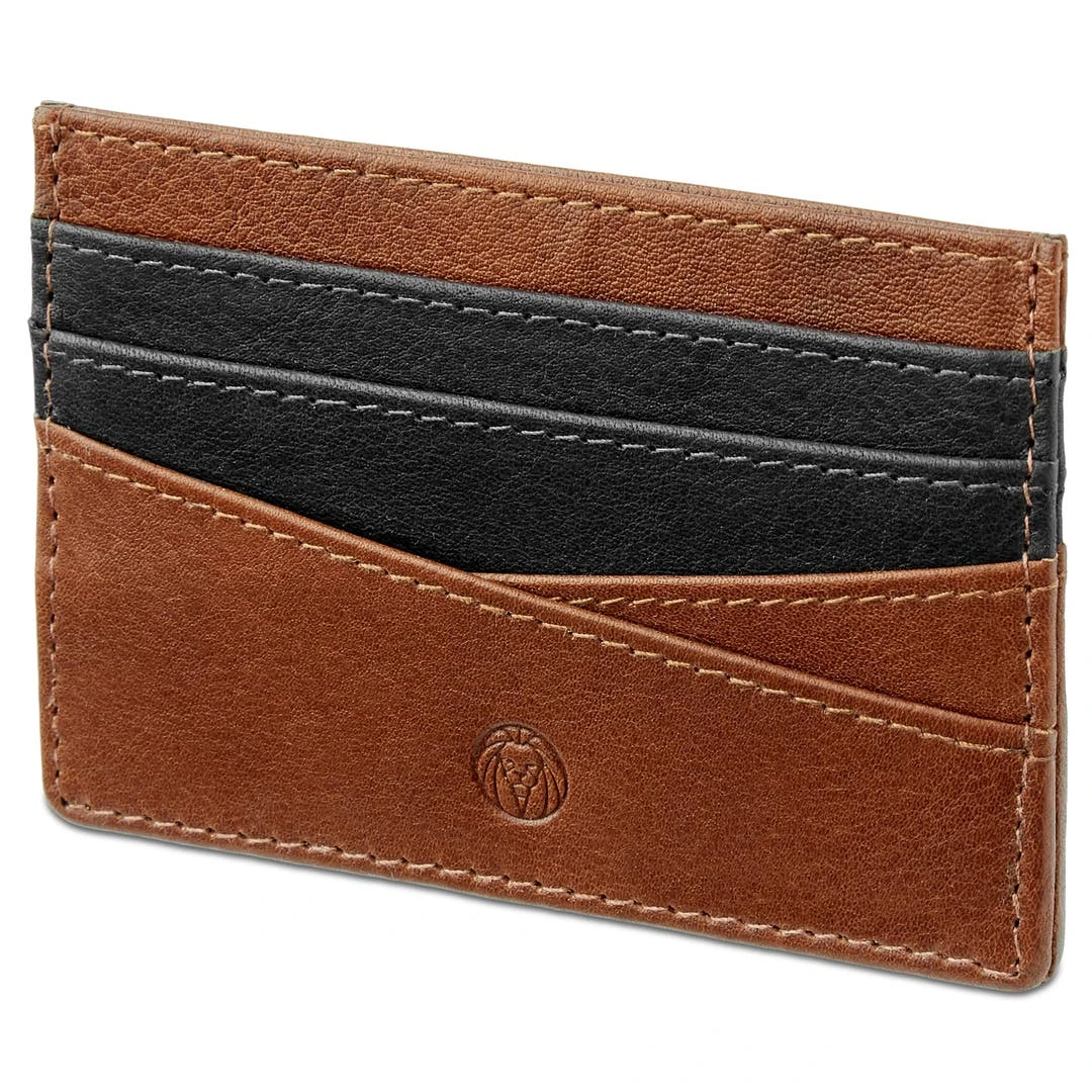 Ce porte-cartes bicolore brun havane et noir est très compact et pourra accueillir jusqu’à six cartes de crédit. Son cuir a subi un tannage végétal et il est équipé de la technologie anti-RFID afin de sécuriser vos données personnelles.