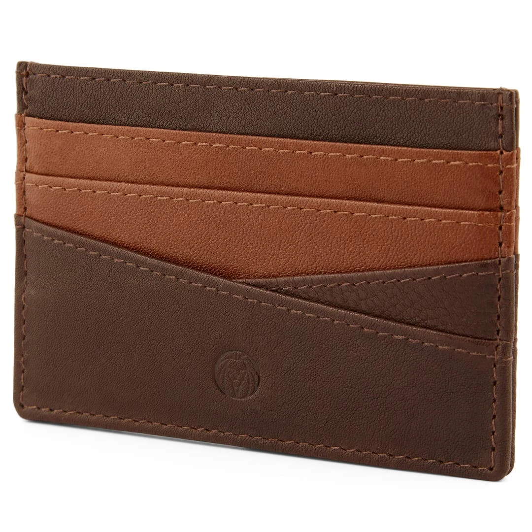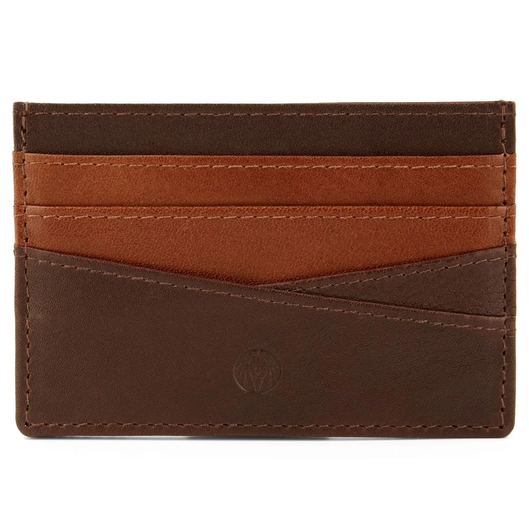 Ce superbe porte-cartes en cuir marron et havane a tout pour plaire. Son design compact vous permettra d’y ranger jusqu’à six cartes de crédit. Protection complète RFID incluse.