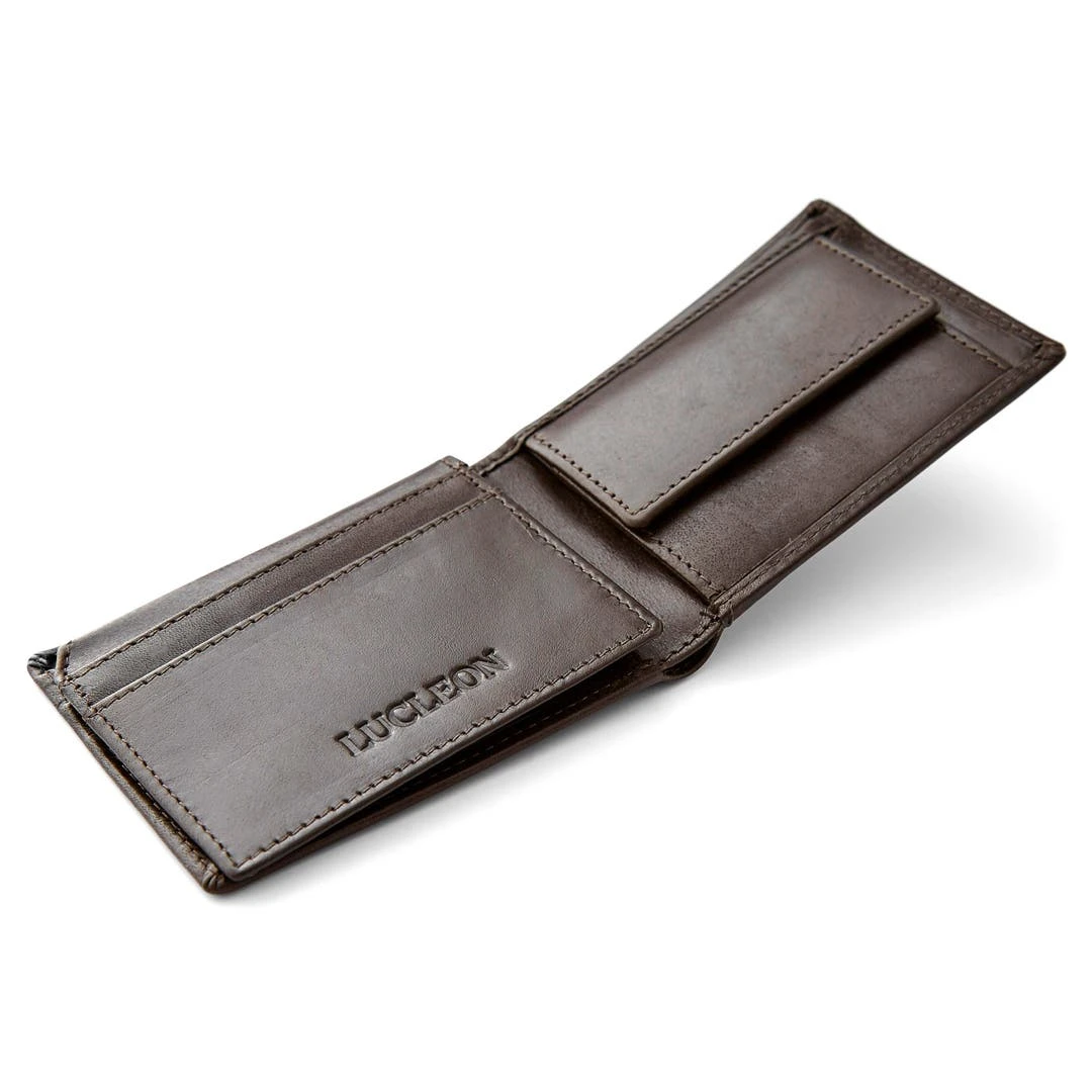 Ce magnifique portefeuille en cuir marron dispose de 4 compartiments à cartes qui peuvent contenir au moins 2 cartes chacun, un compartiment transparent, une poche pour billets et une poche pour la monnaie. Fait de cuir de haute qualité dans un design discret et élégant, ce portefeuille va durer de nombreuses années.
