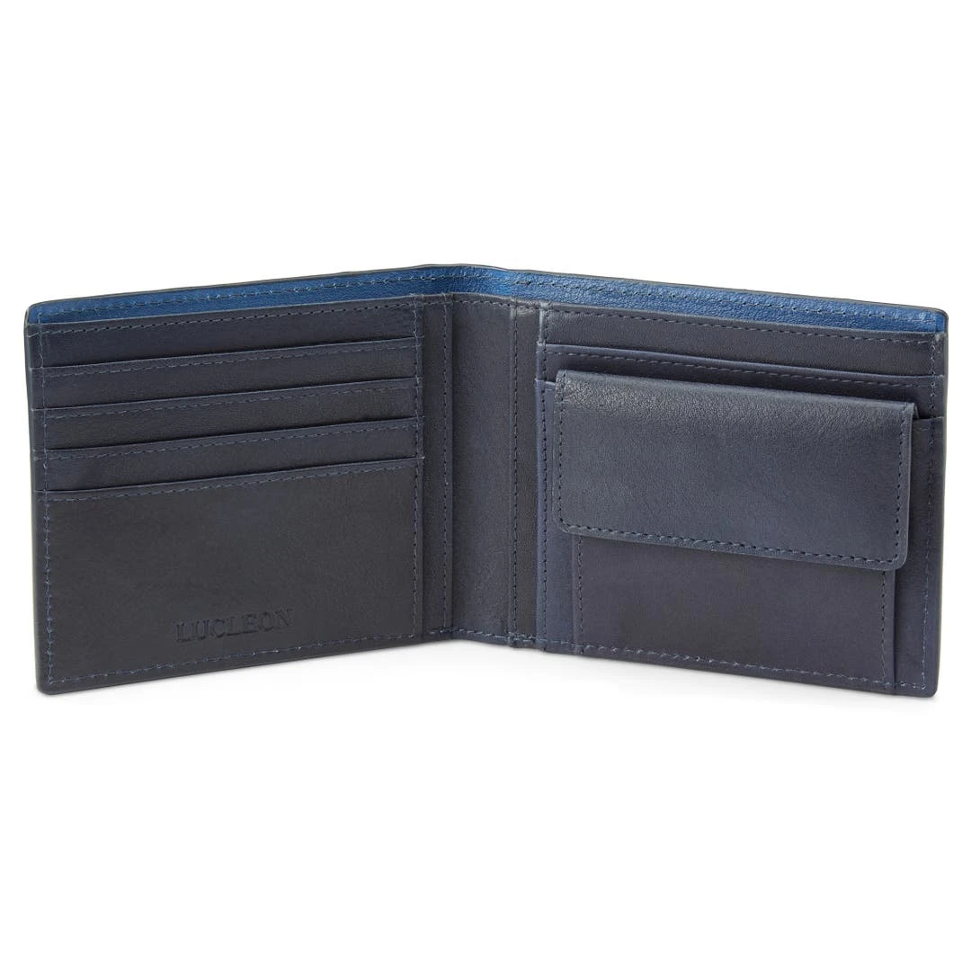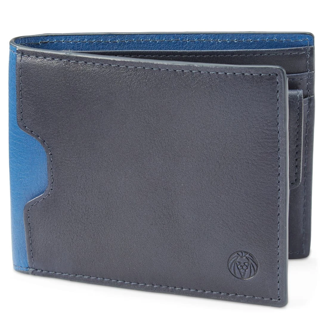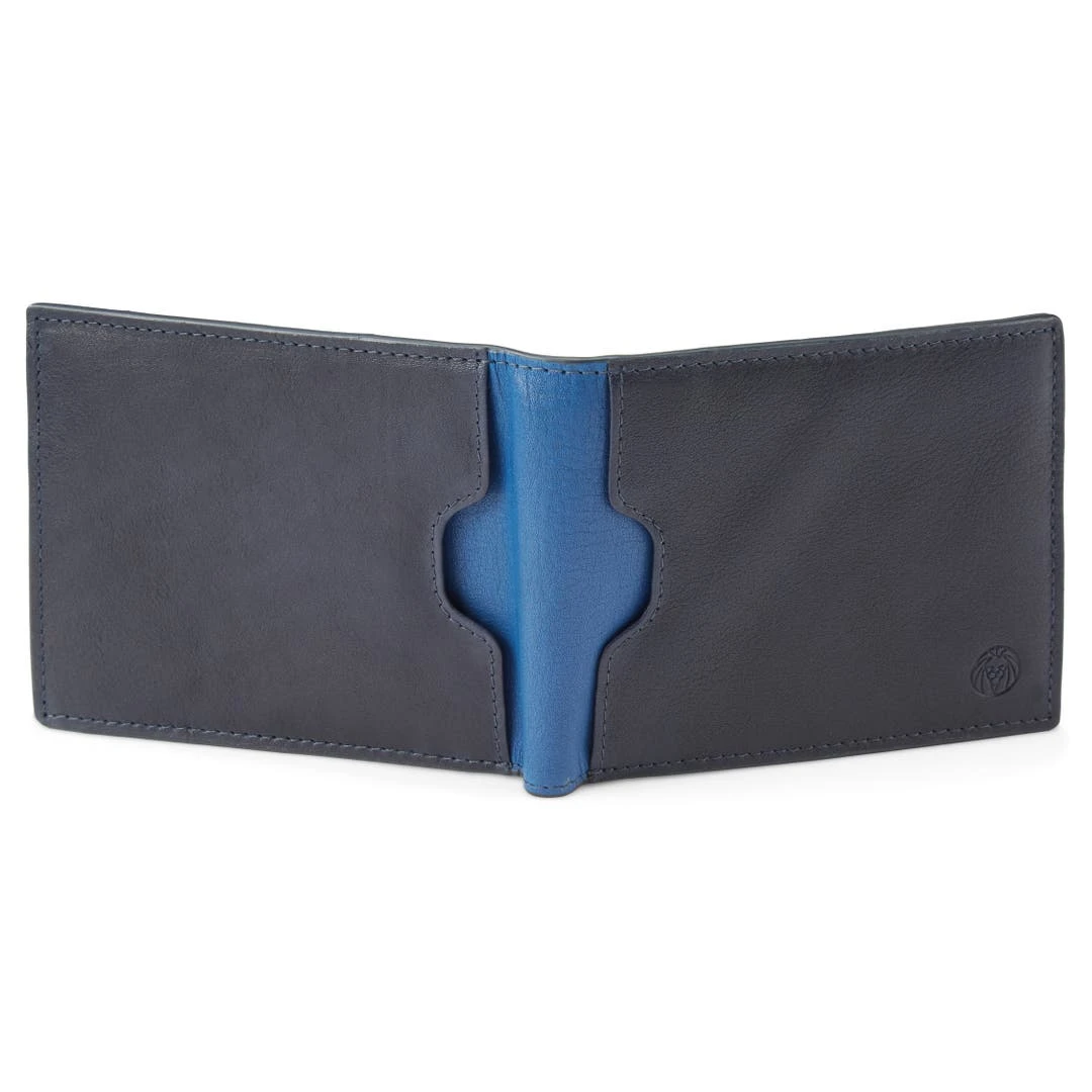 Mis en valeur par les nuances de bleu marine et bleu cobalt du cuir de qualité, ce portefeuille à deux volets allie beauté et sécurité.