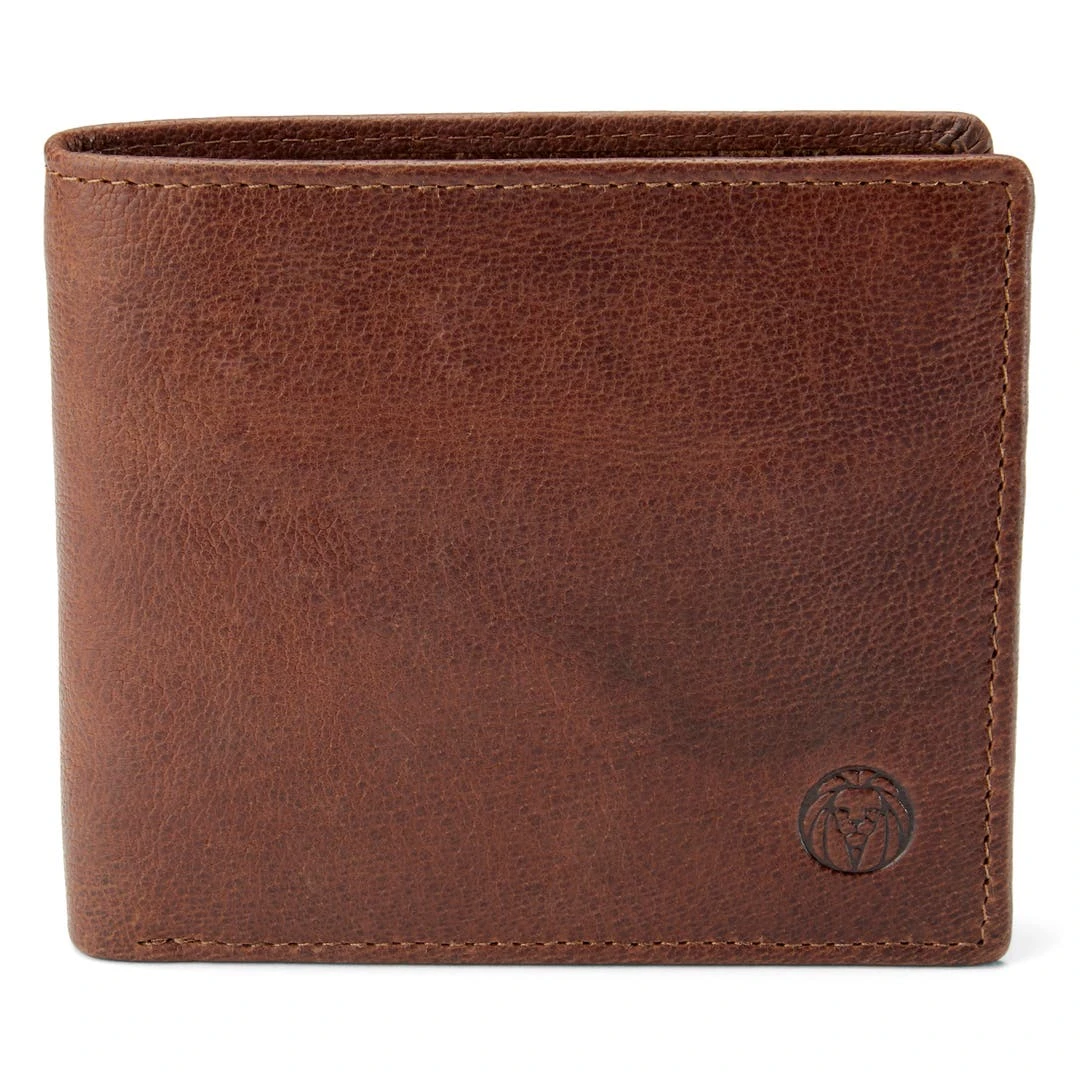 Idéal pour glisser dans votre poche arrière et sortir, ce portefeuille à deux volets est fabriqué à partir de cuir brun durable avec une finition légèrement texturée.