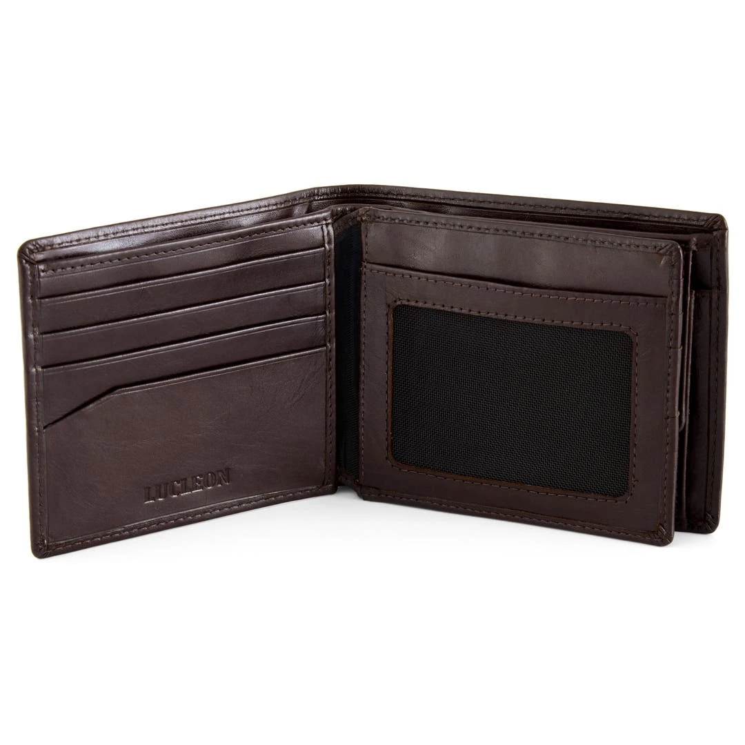 Il dispose de 8 emplacements pour cartes et de deux compartiments à billets. Chaque compartiment peut accueillir deux cartes. Vous y trouverez également un porte-monnaie à bouton-pression et une fenêtre photo.