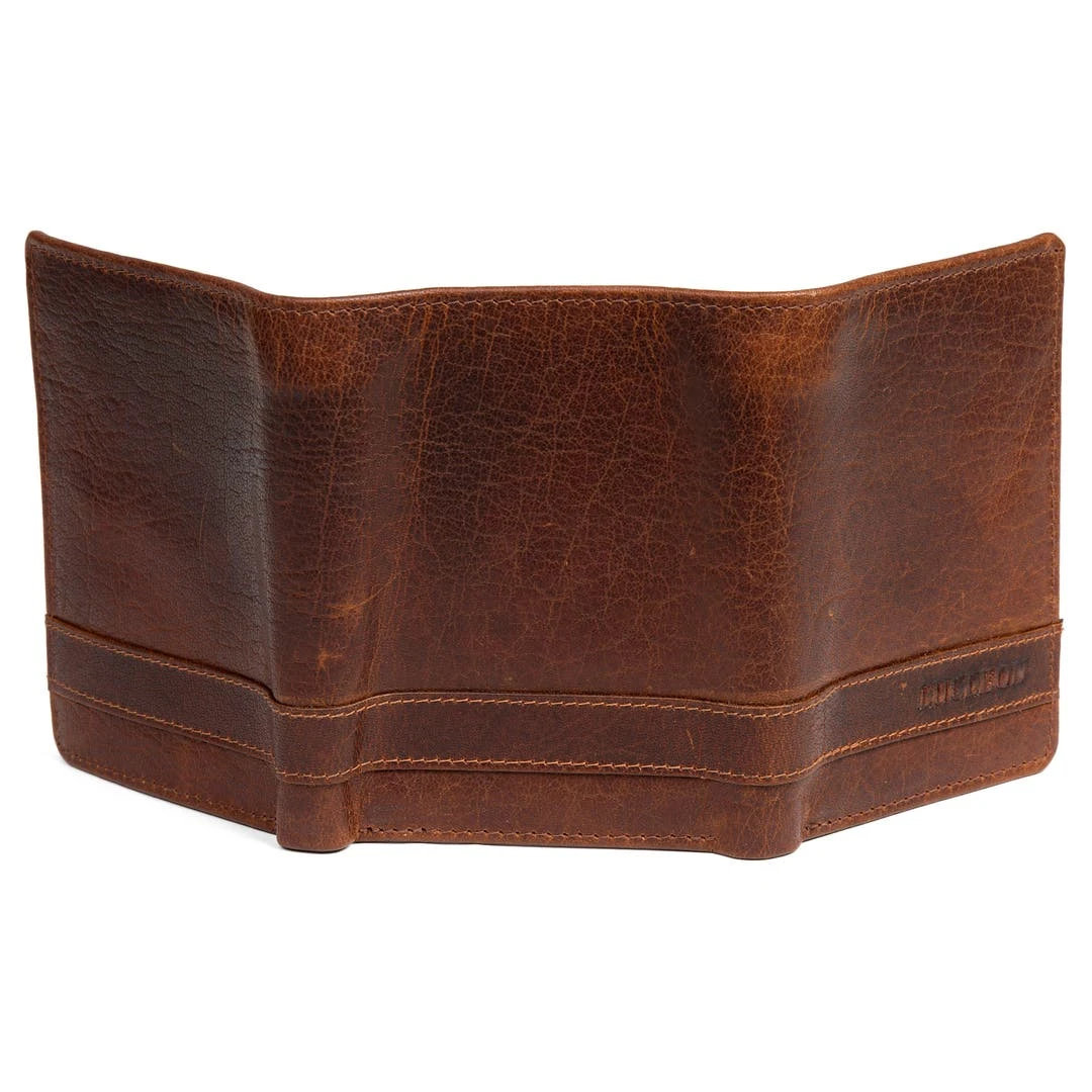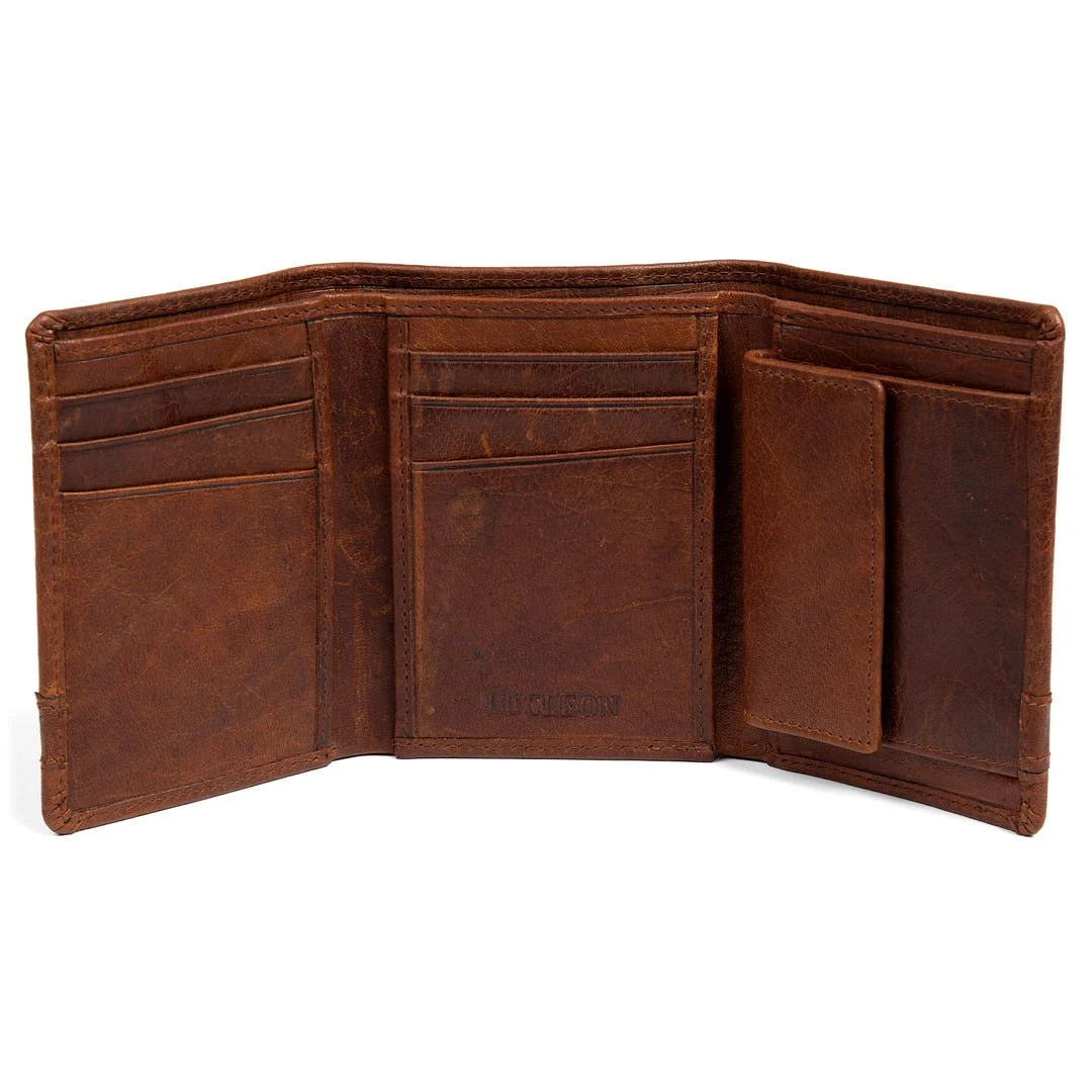 Il s’ouvre en trois volets, le compartiment principal étant divisé au centre, ce qui vous offre deux compartiments spacieux pour vos billets. Il dispose également d’un porte-monnaie et de deux grandes poches ouvertes pour vos reçus.