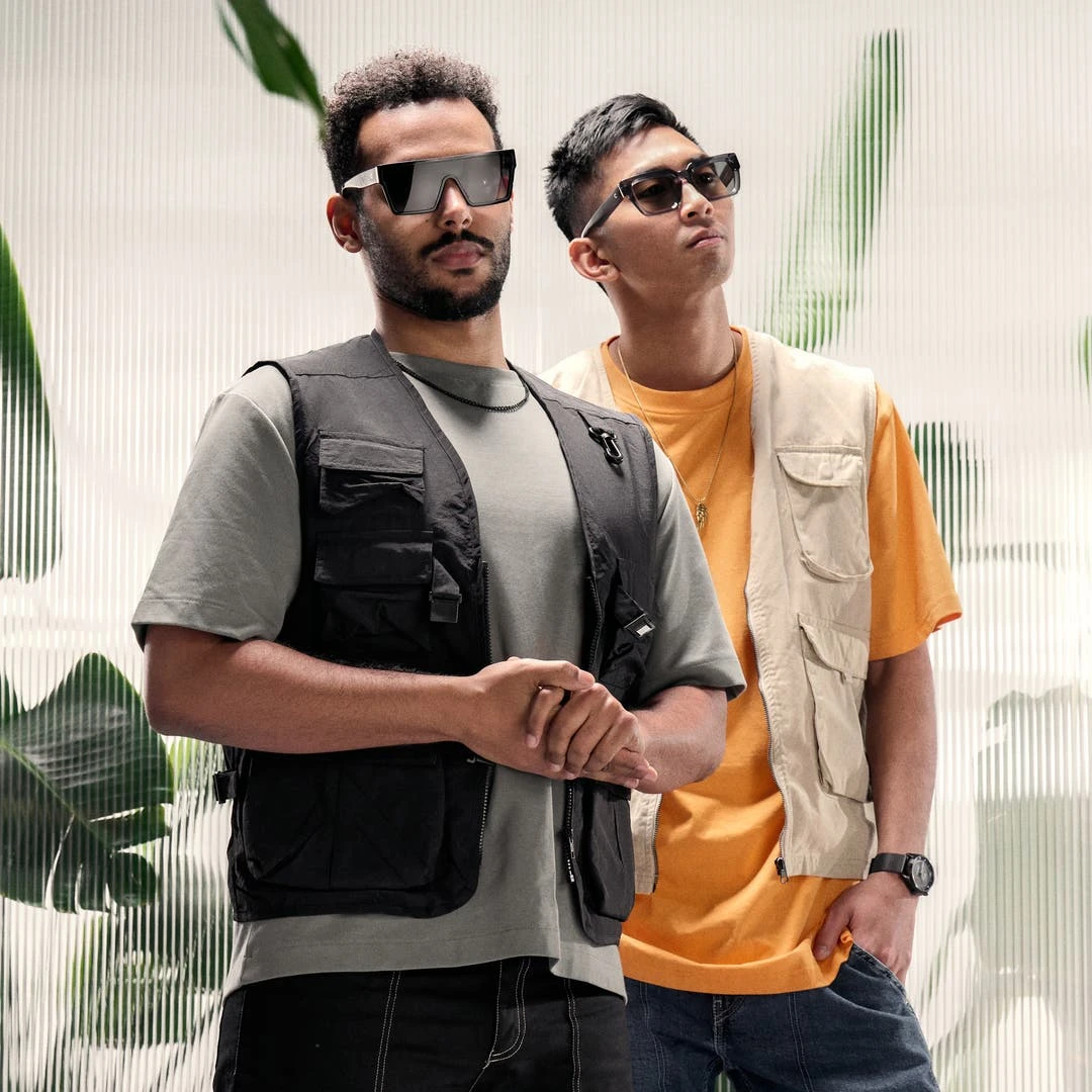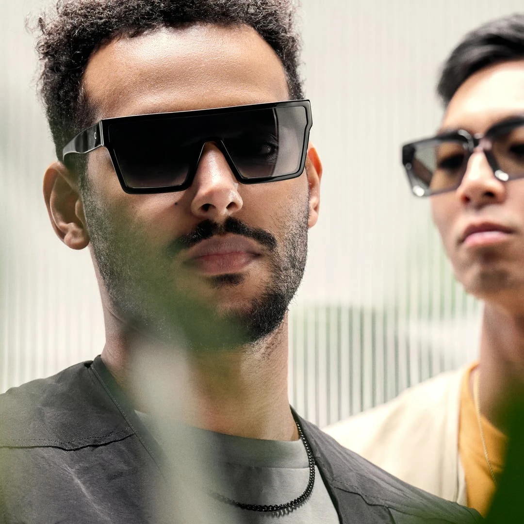 Des lunettes de soleil pour homme au charme délicieusement rétro. Leurs montures carrées, fabriquées en acétate durable et léger, présentent un audacieux design monobloc.