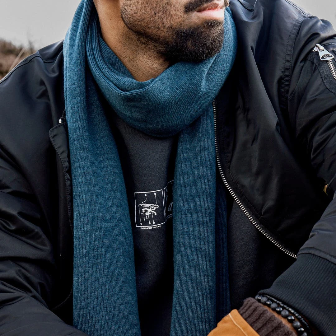 Une écharpe pour hommes de couleur bleu foncé très flatteuse, pour accompagner (presque) toutes vos tenues. Composée d’un mélange de mérinos de haute qualité, elle vous tiendra chaud en toutes situations. Nouez-la de mille manières différentes pour changer de style quotidiennement.