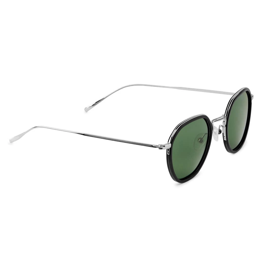Cette paire de lunettes de soleil pour homme est constituée d’une monture en acier inoxydable sertie de verres de couleur verte. Un modèle robuste et léger, très confortable à porter.