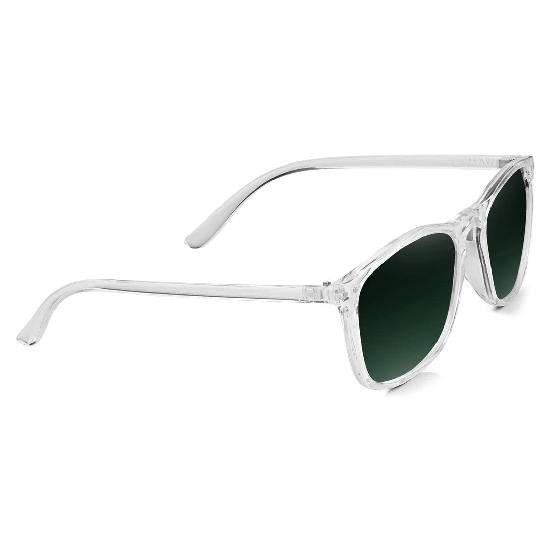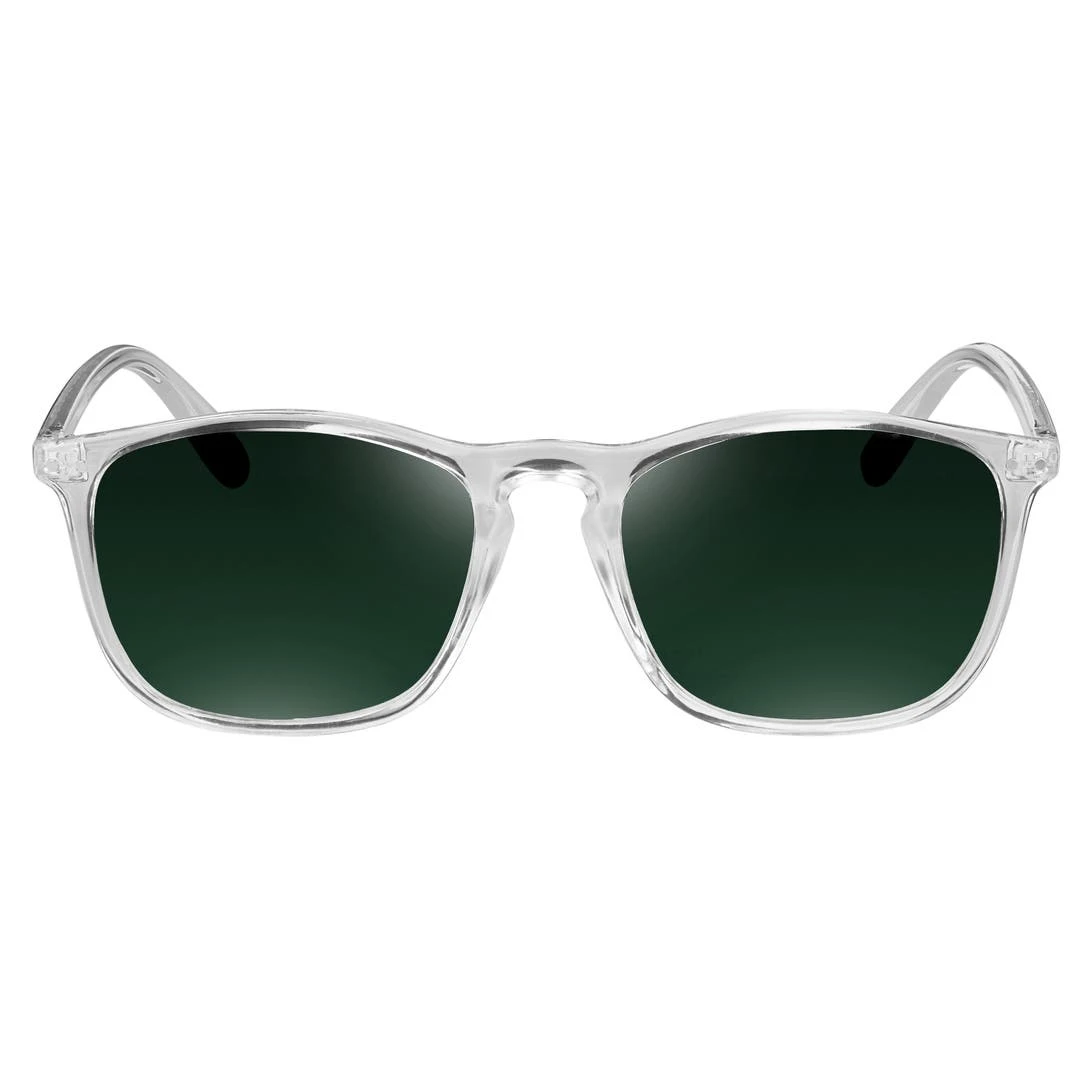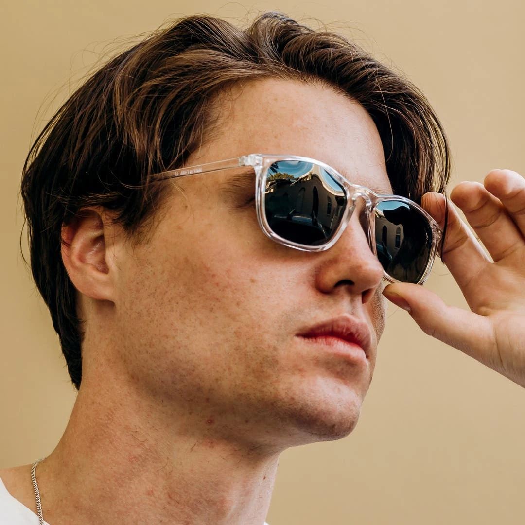 Ces montures transparentes sont une variation originale sur base d’un design classique et indémodable. Leurs verres foncés offrent une protection complète contre les rayons UVA / UVB. Ces verres sont par ailleurs polarisés pour un confort oculaire maximal.
